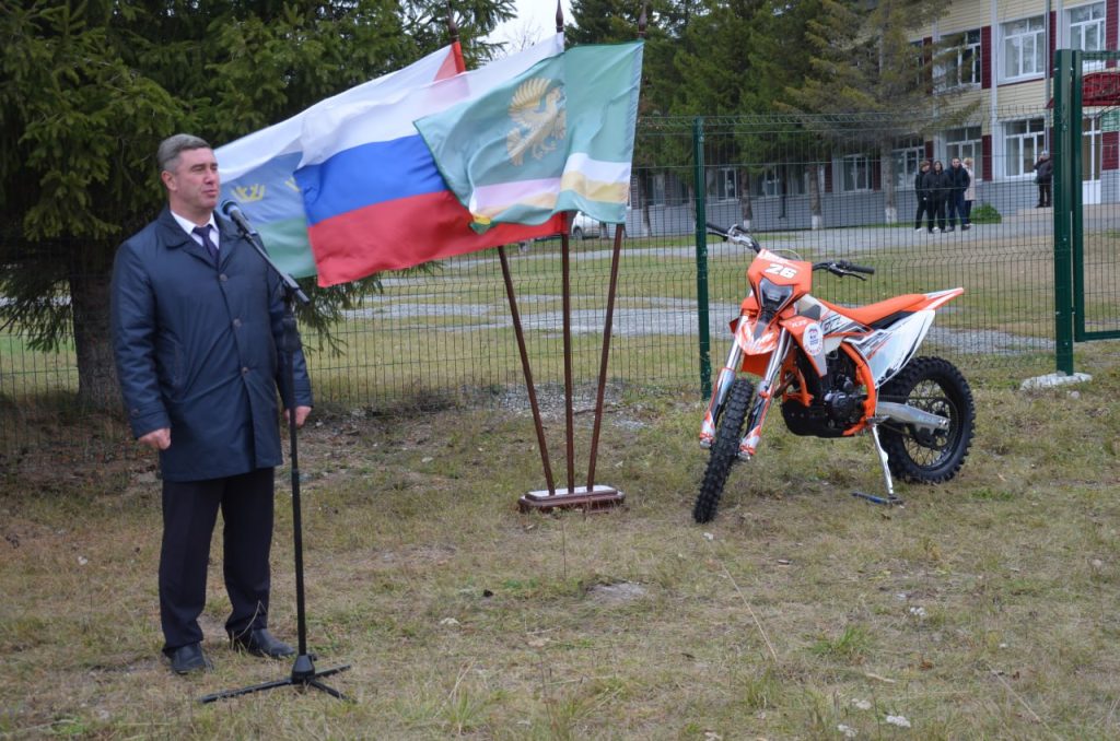 В рамках торжественной церемонии открытия заместитель председателя окружной Думы Николай Бакланов передал в пользование Спортивной школе самый настоящий байк для развития мотоциклетного спорта.