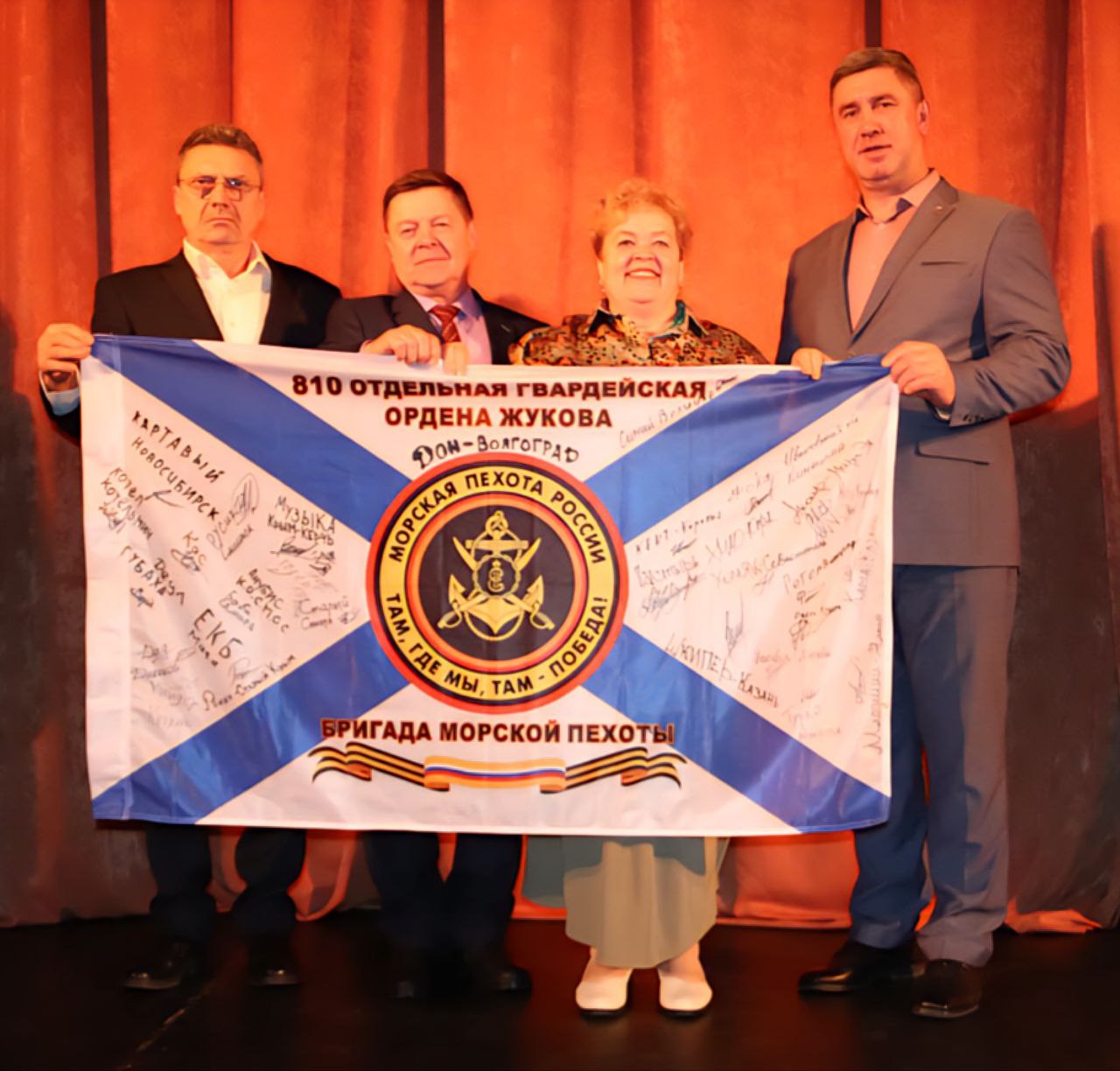 По традиции были отмечены те, кто своим примером показывает стойкость, веру в победу, любовь к Родине. Памятной медалью в честь 80-летия Великой Победы был награждён председатель Нижнетавдинского отделения Всероссийской общественной организации «Боевое братство» Владимир Павлов. В знак благодарности за постоянную благотворительную помощь и поддержку районному совету ветеранов войны и труда, и правоохранительных органов вручили флаг 810-й отдельной гвардейской ордена Жукова бригады морской пехоты. Из рук главы округа Сергея Борисевича его получили председатель совета Валентина Девяткова, гвардии майор в отставке Александр Гилёв и ветеран боевых действий в Афганистане Вадим Павлов.