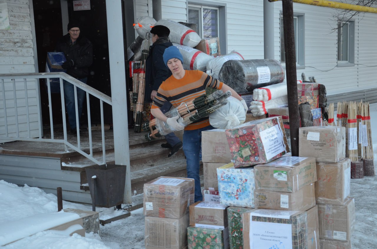 Помимо маскировочных сетей, сапёрных щупов, окопных свечей, продуктов питания и прочего в путь отправилось и тепло детских сердец: 80 коробок-подарков для бойцов, собранные учащимися Нижнетавдинской и Киндерской школ.