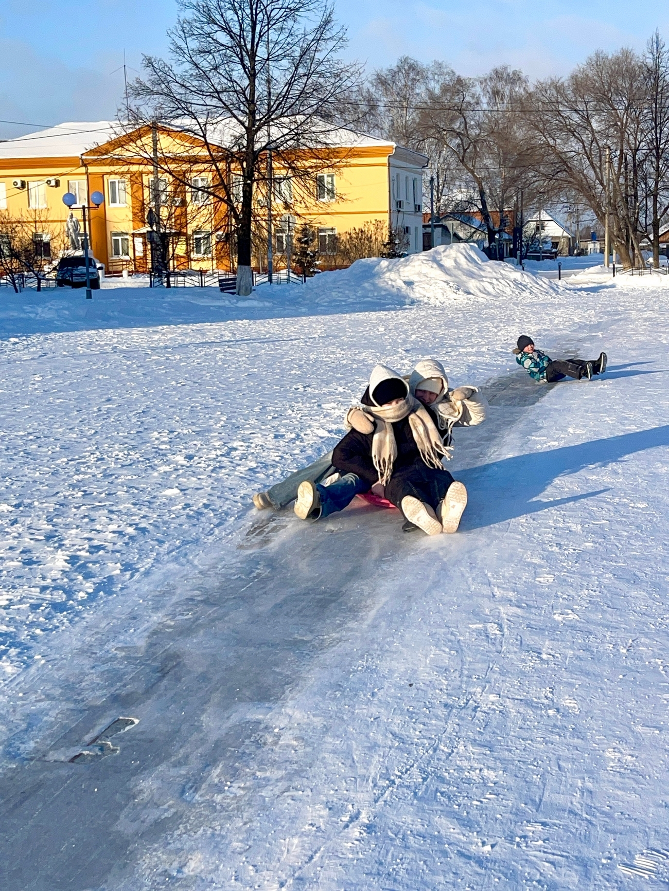 Здесь были настоящие эмоции: скорость, весёлый смех, громкие возгласы «А-а-а!» и дружная поддержка друг друга (особенно когда приходилось снова поднимать снегокаты и ледянки на вершину горы).