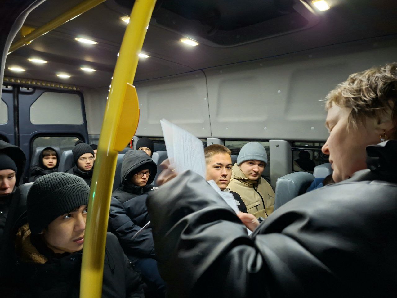 Ребята из нашего района, проходящие обучение в Тюмени, уже находились на месте сбора. Утром сопровождающие лица произвели перекличку молодых людей согласно официальному списку, после чего распределили всех по транспортным средствам.