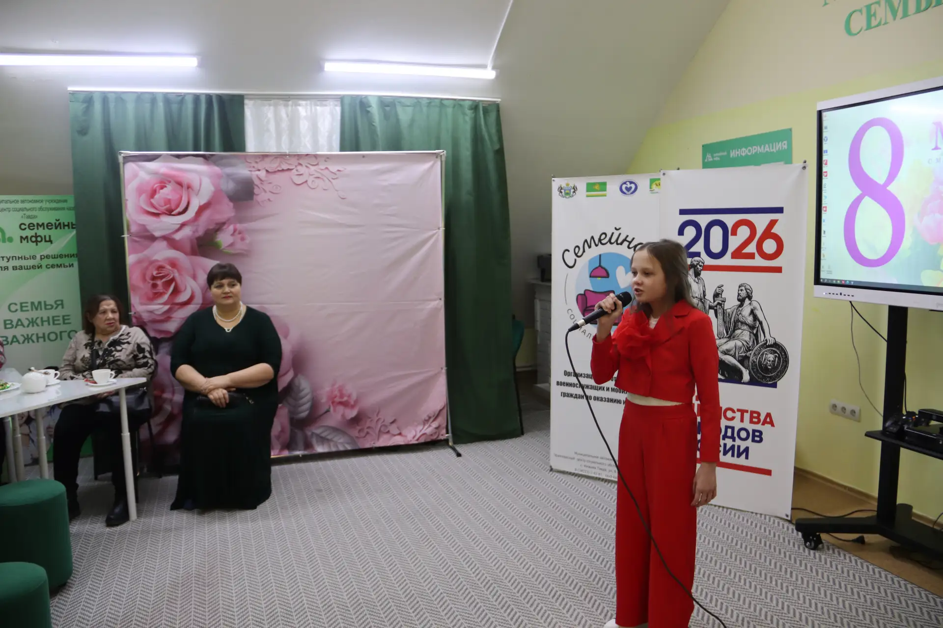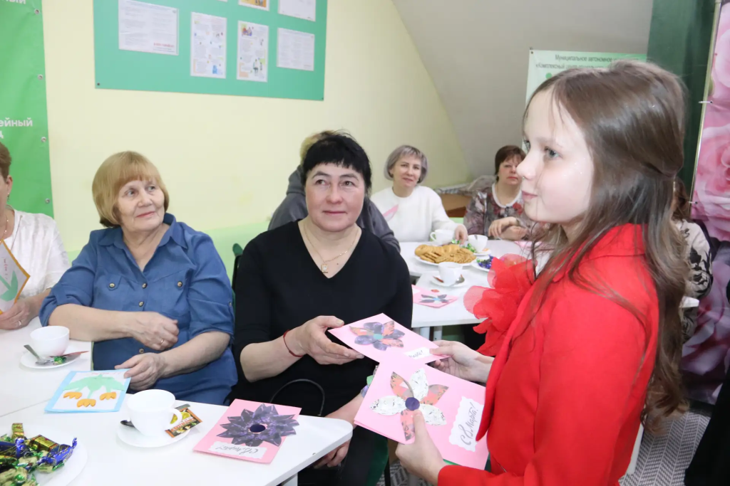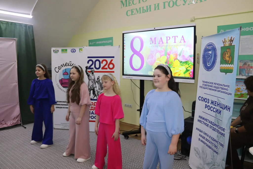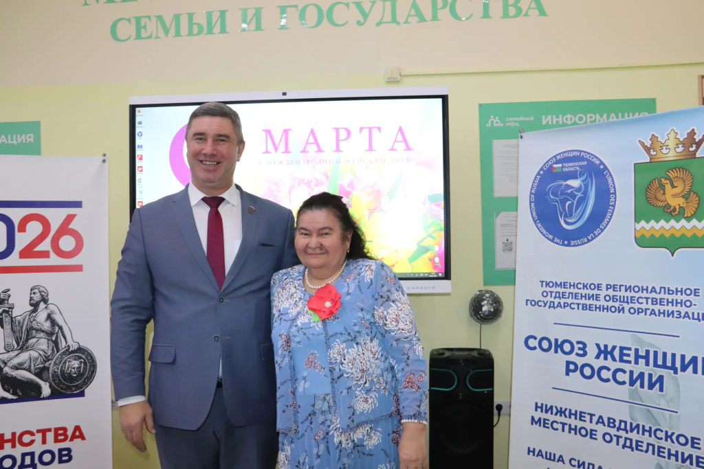 Руководитель Нижнетавдинского местного отделения Союза женщин России Анна Маркова поздравила всех с праздником, пожелав им оставаться такими же женственными, но сильными и мужественными, чтобы быть надёжным тылом для наших защитников, и подарила небольшие сладкие подарки.