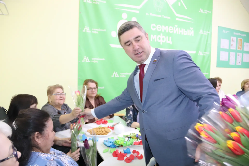 Глава Нижнетавдинского округа Сергей Борисевич приветствовал всех присутствующих представительниц прекрасного пола, выразив им глубокую признательность и благодарность за наших героев, находящихся в зоне специальной военной подготовки. Он пожелал всем крепкого здоровья, счастья, благополучия, скорейшего возвращения мужчин домой и мирного неба над головой. В знак признательности он вручил женщинам букеты цветов.