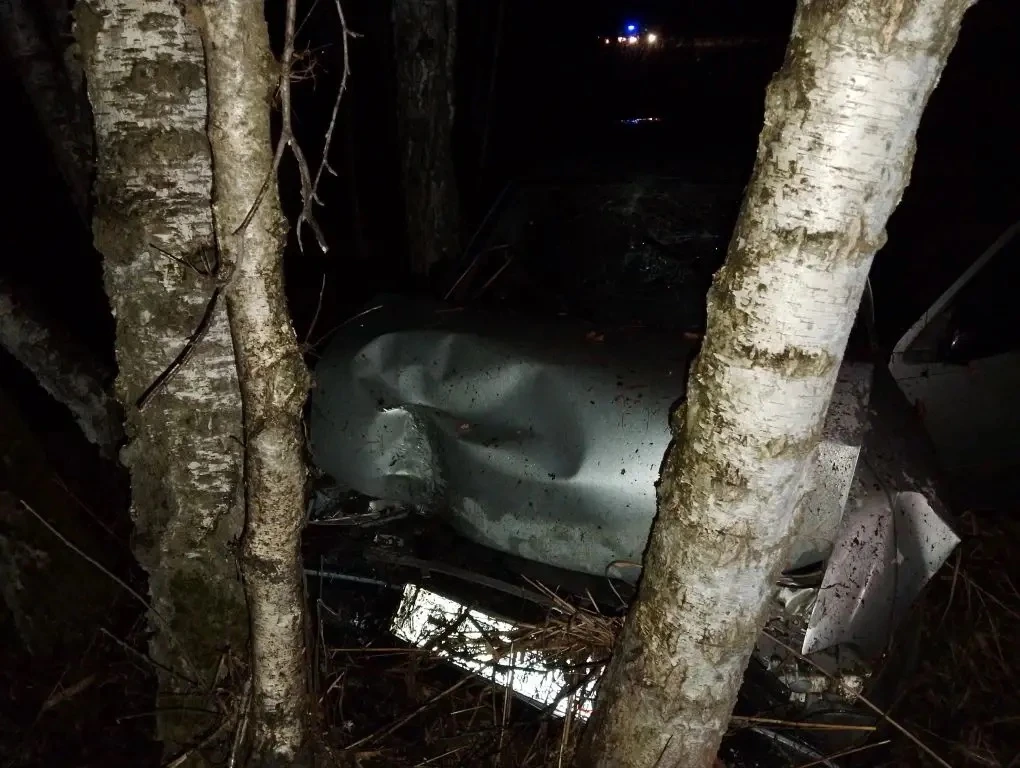 Предварительно, здесь столкнулись два автомобиля, один из которых «Дэу Нексия». От удара «Дэу» отбросило на деревья, вторая машина скрылась.
